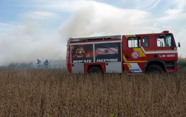 Allí operarios que estaban recolectando soja en una cosechadora John Deere detectaron fuego saliendo de la parte trasera, ante lo cual reaccionaron rápidamente con los matafuegos reduciendo las llamas y llevando luego la máquina hasta la casilla para seguir combatiendo las llamas, logrando sofocar el siniestro salvando así en un arriesgada maniobra la valiosa maquinaria.