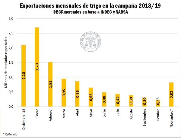 En el mes de noviembre, según la información de embarques de la compaña marítima NABSA, habrían salido de nuestro país buques con 821.400 toneladas de trigo en grano. Con este dato, se está en condiciones de realizar un balance de los que nos dejó la campaña comercial triguera 2018/19 en nuestro país.