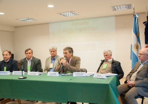 De la apertura, participaron Juan Balbín, Mariano Bosch y Héctor Espina –presidente, vice y director nacional del INTA, respectivamente–; David Hughes, presidente de ArgenTrigo; Pablo Mercuri, director del Centro de Investigación de Recursos Naturales del INTA y Guillermo Eyherabide, coordinador del Programa Nacional de Cereales y Oleaginosas del INTA.