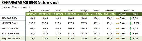 Los valores del trigo en el mercado local se mantuvieron en torno a los $ 3.000/tonelada, prevaleciendo el gran interés del sector exportador por asegurarse la provisión de la mercadería. Éstos habrían originado y embarcado en el mes de diciembre un volumen récord de mercadería.