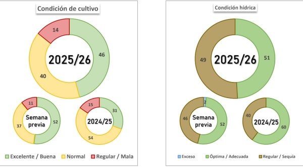 De cara a las próximas semanas, el cultivo continúa dependiendo de nuevas precipitaciones de carácter generalizado, especialmente sobre el centro y sur del área agrícola, para atravesar los estadios críticos con estabilidad productiva.