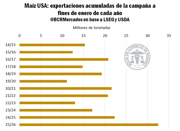 En el corto plazo, Estados Unidos sigue liderando las exportaciones globales. Con una cosecha récord superior a 430 millones de toneladas, ya despachó más de 32 Mt, superando ampliamente los registros del ciclo anterior.