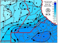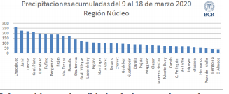 Finalmente las lluvias alcanzaron a toda la región, pero la diferencia entre el norte y el sur de la región quedó subrayada por una diferencia de 100 mm. En el norte de Buenos Aires los registros sobrepasan los 150 mm, en especial en el área de Chacabuco, Junín, Lincoln y Pinto con más de 200 mm. En Chacabuco el registro total de acumulados de los últimos 10 días dejó 260 mm. Hacia el norte y el oeste los registros caen drásticamente por debajo de los 100 mm y menos tambien: Colonia Almada quedó con solo 36 mm en Córdoba. En Santa Fe fue algo mejor, Carlos Pellegrini sumó 67 mm. Más allá de entorpecer la cosecha, estos milímetros empiezan a ser claves para para la próxima gran campaña triguera que se viene.