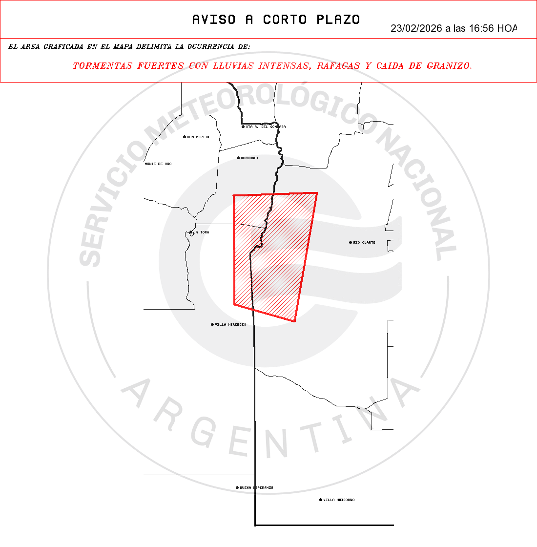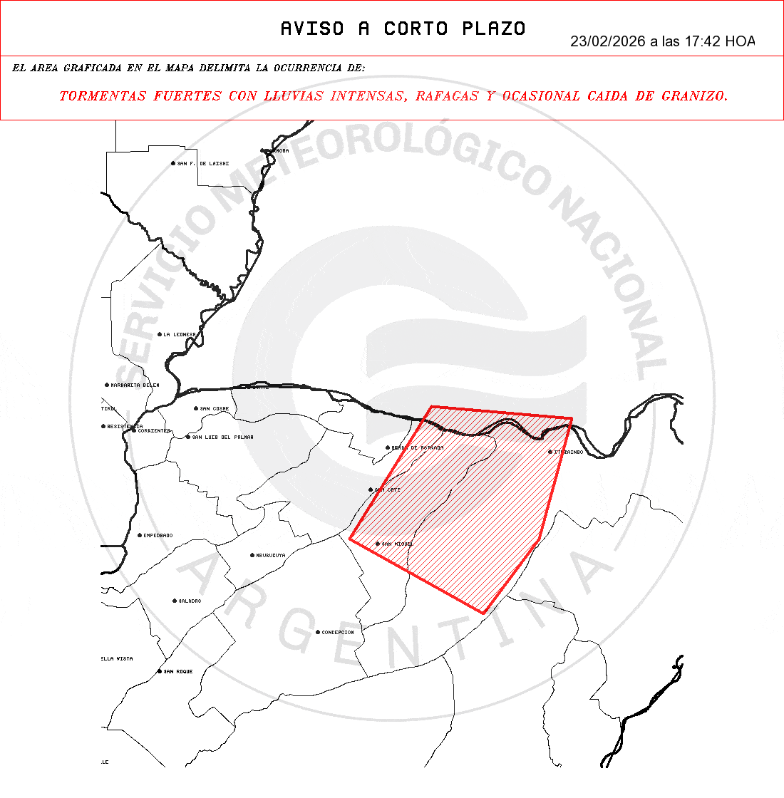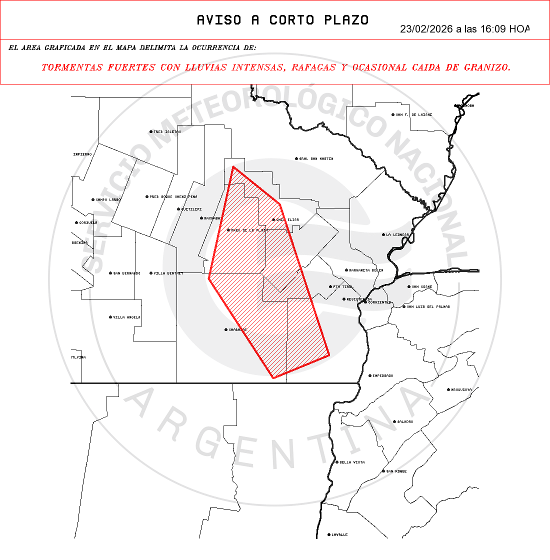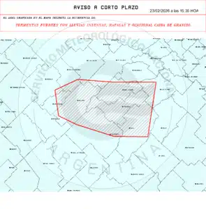 - Medidas de protección: 1- Retirá o asegurá objetos que puedan ser arrojados por el viento. 2- Cerrá y alejate de puertas y ventanas. 3- No te refugies debajo de marquesinas, carteles publicitarios, árboles o postes 4- Permanecé en construcciones cerradas como casas, escuelas o edificios públicos. 5- Desconectá los electrodomésticos y cortá el suministro eléctrico si ingresa agua. 6- Alejate de zonas inundables y no ingreses en calles anegadas. 7- Mantenete alejado de artefactos eléctricos y evitá el uso de teléfonos con cable. 8- Si estás al aire libre, buscá refugio inmediato en un edificio, casa o vehículo cerrado. 9- Para minimizar el riesgo de ser alcanzado por un rayo, no permanezcas en playas, ríos, lagunas o piletas.Los fenómenos indicados en el ACP fueron detectados con radares meteorológicos.