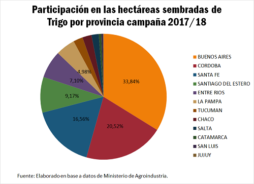 Las mejoras en los valores pagados por el trigo en el mercado doméstico junto con condiciones climáticas favorables durante la siembra permitieron una fuerte expansión del área sembrada de trigo argentino, que se estimó en 6,32 M ha para la campaña 2018/19. Esto resulta un 16 % mayor que la campaña pasada, en donde estimando rindes acordes a la mejor tecnología aplicada y condiciones normales climáticas se proyecta una producción de 21 millones de toneladas.