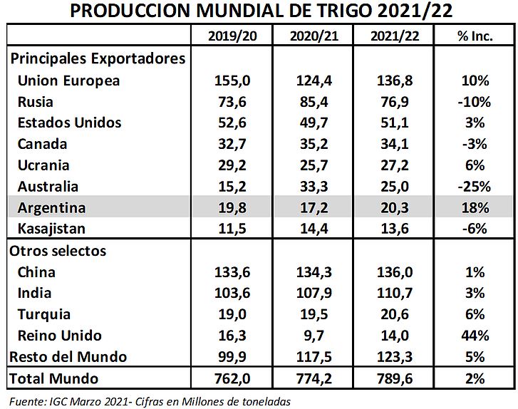 Según las primeras estimaciones del Consejo Internacional de Granos (IGC de su sigla en inglés) dadas a conocer hace pocos días en Londres, proyectan un significativo incremento en producción mundial de trigo, que seguramente serán ratificadas por el Departamento de Agricultura de los Estados Unidos (USDA de su sigla en inglés), en los próximos meses.