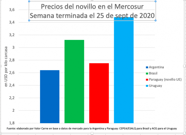 En la última semana, las cotizaciones en dólares del novillo en los diferentes países del Mercosur tuvieron el siguiente comportamiento.