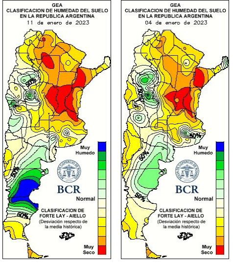 “La situación ha empeorado. Ésta es la última semana para revertir la situación de la soja de primera que está en estado regular”, lo dicen desde los alrededores de Rosario donde recibieron menos de 5 mm entre ayer (miércoles 11) y hoy (jueves 12). En Carlos Pellegrini esperan un rinde de 20 qq/ha suponiendo que en el corto plazo las lluvias se recomponen. En Bigand esperan el mismo nivel de producción sin embargo advierten: “esto podrá alcanzarse siempre y cuando tengamos en los próximos días buenas lluvias, temperaturas normales y que no ocurran heladas tempranas”. En Baradero ya se había perdido el 30% de la soja de primera previo a Navidad, con las lluvias que se dieron entre el 25 de Diciembre y Año Nuevo lograron resembrarla, pero hoy los cuadros vuelven a estar en estado crítico: “las plantas están muy pequeñas y comienza a haber mortandad en los lotes. El rinde promedio rondará los 15 a 20 qq/ha, aunque la situación podría empeorar si terminamos enero sin lluvias”. En el este cordobés dicen que si bien aún no hay pérdidas totales ya hay mermas de entre el 50% al 60% en los rindes.