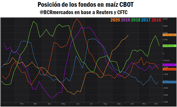Los fondos de inversión han venido fortaleciendo sus posiciones compradoras en Chicago en las últimas semanas, favoreciendo el rally alcista de los precios en este mercado. Además de los análisis relacionados a los aspectos fundamentales, que llevan a los fondos a tomar posiciones de acuerdo a una previsión de la tendencia en los precios, las tasas bajas a nivel internacional para activos de bajo riesgo y la debilidad del dólar estadounidense, han llevado a un rebalanceo de las carteras de inversión, tornando más atractivos los activos representativos de commodities agrícolas.
