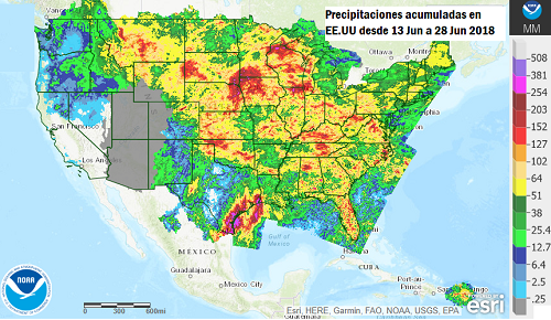 Hasta principios de julio, siempre de acuerdo a Thomson Reuters, se esperan temperaturas cercanas a las normales en gran parte de las Planicies, lo que sería positivo para el trigo de primavera. Por otro lado, se prevén lluvias en partes del centro y sur de la región durante los próximos 10 a 15 días, que deberán ser monitoreadas ya que podrían retrasar las cosechas o incluso generar enfermedades en la etapa final de llenado de granos.