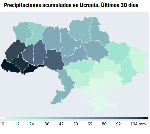 Ucrania es uno de los países que resultaron afectados por la sequía. Especialistas de Reuters afirman que gran parte del centro, este y sur del país no ha recibido lluvias desde abril. Esta sequía llevó a la agencia Agritel a reducir las expectativas para la cosecha de trigo ucraniano 2018 a 24,72 MT, un cinco por ciento por debajo del año pasado y dos millones de toneladas menos que en el último informe del USDA.