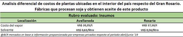 Se da el caso de fábricas del interior del país donde se duplica el flete y la logística respecto de las plantas del Gran Rosario. En efecto, hay un flete para trasladar las semillas oleaginosas desde la “zona de originación” a la fábrica y luego de procesada la misma debe trasladarse el producto terminado desde la fábrica a los puertos de exportación o zonas de consumo. Estas operaciones implican carga y descarga en ambas oportunidades, con un fuerte aumento en los costos logísticos.