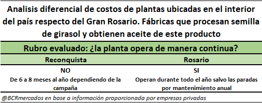 Cabe aclarar que en las plantas exclusivas de elaboración de girasol, se suele utilizar como combustible la misma cascara derivada del proceso, lo que reduce significativamente el costo incurrido.