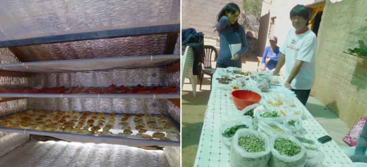 Por otro lado, en el año 2015 las Comunidades Unidas de Molinos (CUM), organización que nuclea a productores de ese departamento salteño, proponen mejorar aspectos del agregado de valor en frutas, productos hortícolas y aromáticas mediante la optimización del proceso de deshidratado. La tecnología de secado tradicional más difundida en los Valles es el “cañizo”, especie de mesones de caña sobre los cuales se colocan los productos a secar en condiciones ambientales, aprovechando la buena irradiación y la baja humedad imperantes en la mayor parte del año. Estos frutos y verduras secos son muy valorados por el mercado local, y cuentan con una alta demanda.