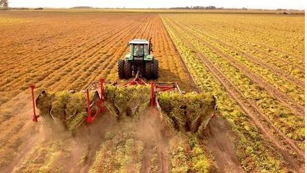 El maní no sabe de esperas, una vez arrancado, debe ser cosechado y cargado inmediatamente para llegar a la planta procesadora, donde se realiza su secado industrial.