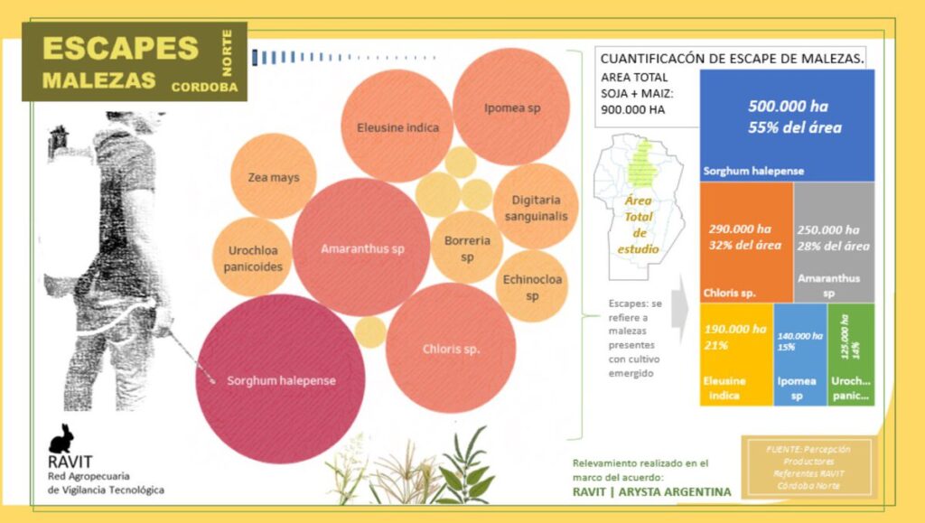 Un relevamiento elaborado por la Red Agropecuaria de Vigilancia Tecnológica (Ravit Agro) y la empresa Arysta alertó por un fuerte escape de malezas en los campos agrícolas del norte de Córdoba.