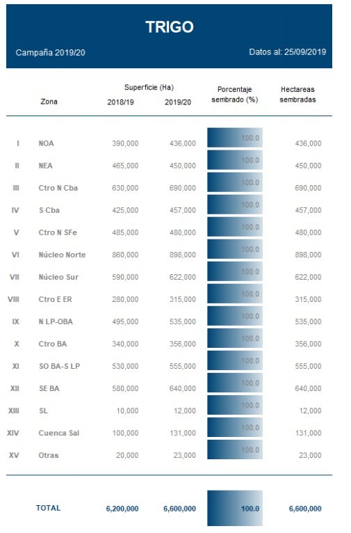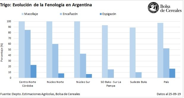 En el norte de la región agrícola, buena parte de los trigos ya se encuentran en etapas de generación de rendimiento. En el NOA y el NEA, el 85 y el 48 %, respectivamente, se encuentran desde espigazón en adelante, con lo que la ocurrencia de lluvias no mejoraría significativamente las expectativas de rinde de los, que sin embargo se espera que a cosecha la productividad por unidad de superficie supere los valores medios.