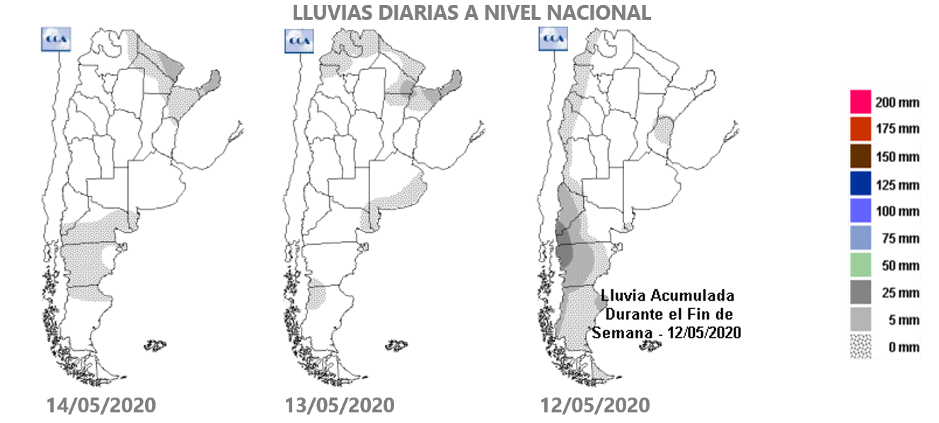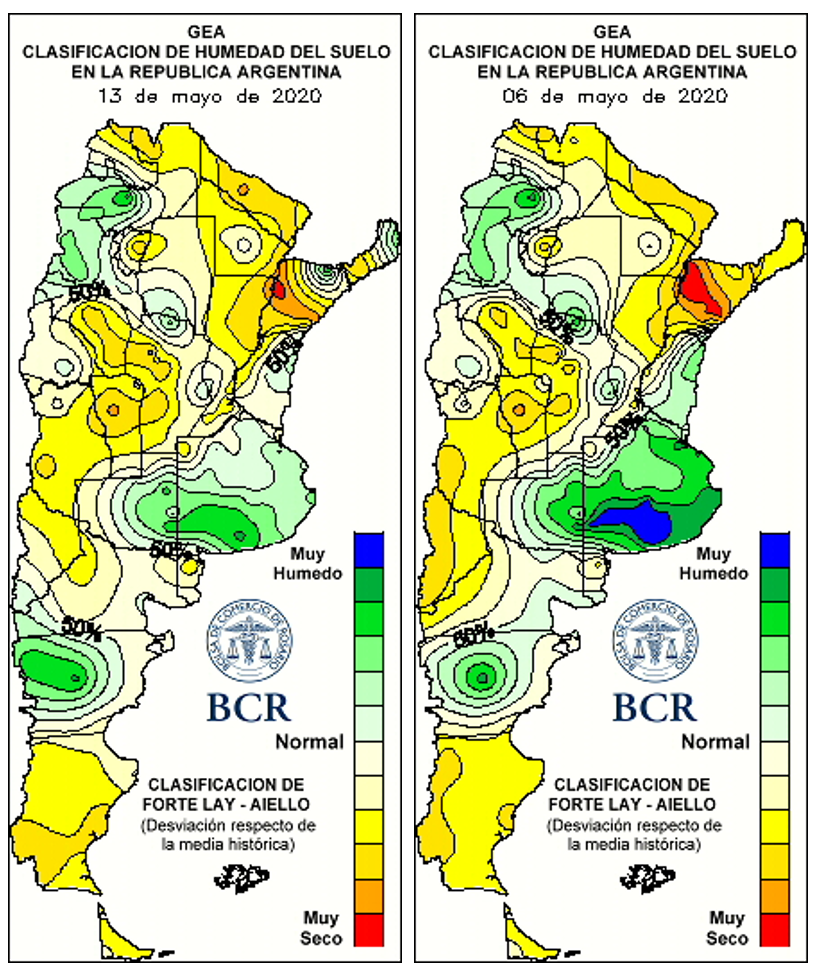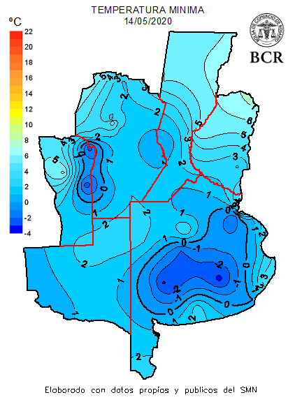 Siguen registrándose bajas temperaturas en cada semana, alejando la amenaza de un invierno cálido. El frío, aparte del agua, es otro factor vital en el desarrollo y éxito del cultivo. La reciente madrugada del 14 de mayo dejó el día más frío en lo que va del mes: amaneció con temperaturas bajo cero grados en gran parte de la Región Pampeana. En el centro-sur de Buenos Aires se registraron los registros más bajos: Tandil -3.3 °C; Cnel. Suárez -3.1 °C; Azul -2.3 °C y Bolívar -2 °C. En el sudeste cordobés del área núcleo, se registraron temperaturas por debajo del cero. Canals midió -0.6 °C y Monte Buey -0.5 °C.