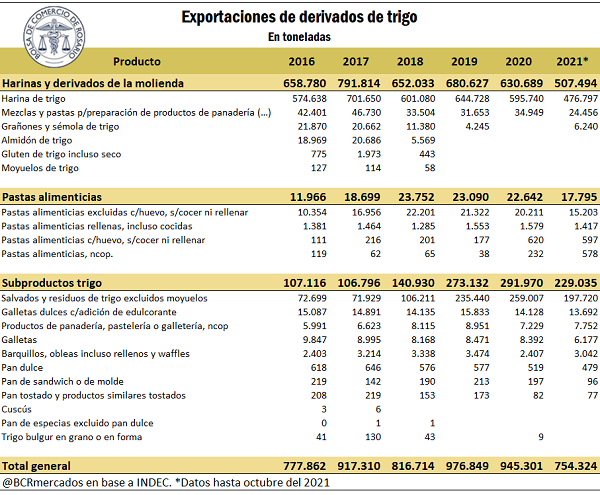 El comercio internacional del trigo se muestra fundamental en esta campaña en vista de la necesidad de divisas para robustecer las cuentas externas argentinas. No obstante, existe también un enorme potencial para profundizar la exportación de productos de primera y segunda industrialización del trigo, que representaron conjuntamente cerca de US$ 300 millones en la campaña 2020/21.