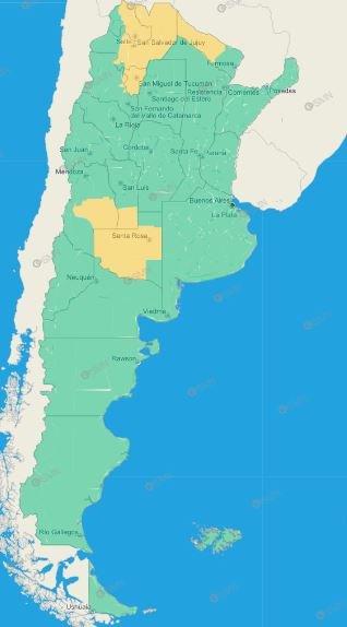 Tucumán: Burruyacú – Capital – Cruz Alta – Famaillá – Graneros – La Cocha – Leales – Simoca – Trancas – Yerba Buena – Zonas bajas de Chicligasta – Zonas bajas de Juan Bautista Alberdi – Zonas bajas de Lules – Zonas bajas de Monteros – Zonas bajas de Río Chico – Zonas bajas de Tafí Viejo – Zona montañosa de Andalgalá – Zona montañosa de Santa María – Zona montañosa de Chicligasta – Zona montañosa de Juan Bautista Alberdi – Zona montañosa de Lules – Zona montañosa de Monteros – Zona montañosa de Río Chico – Zona montañosa de Tafí Viejo – Zona montañosa de Tafí del Valle