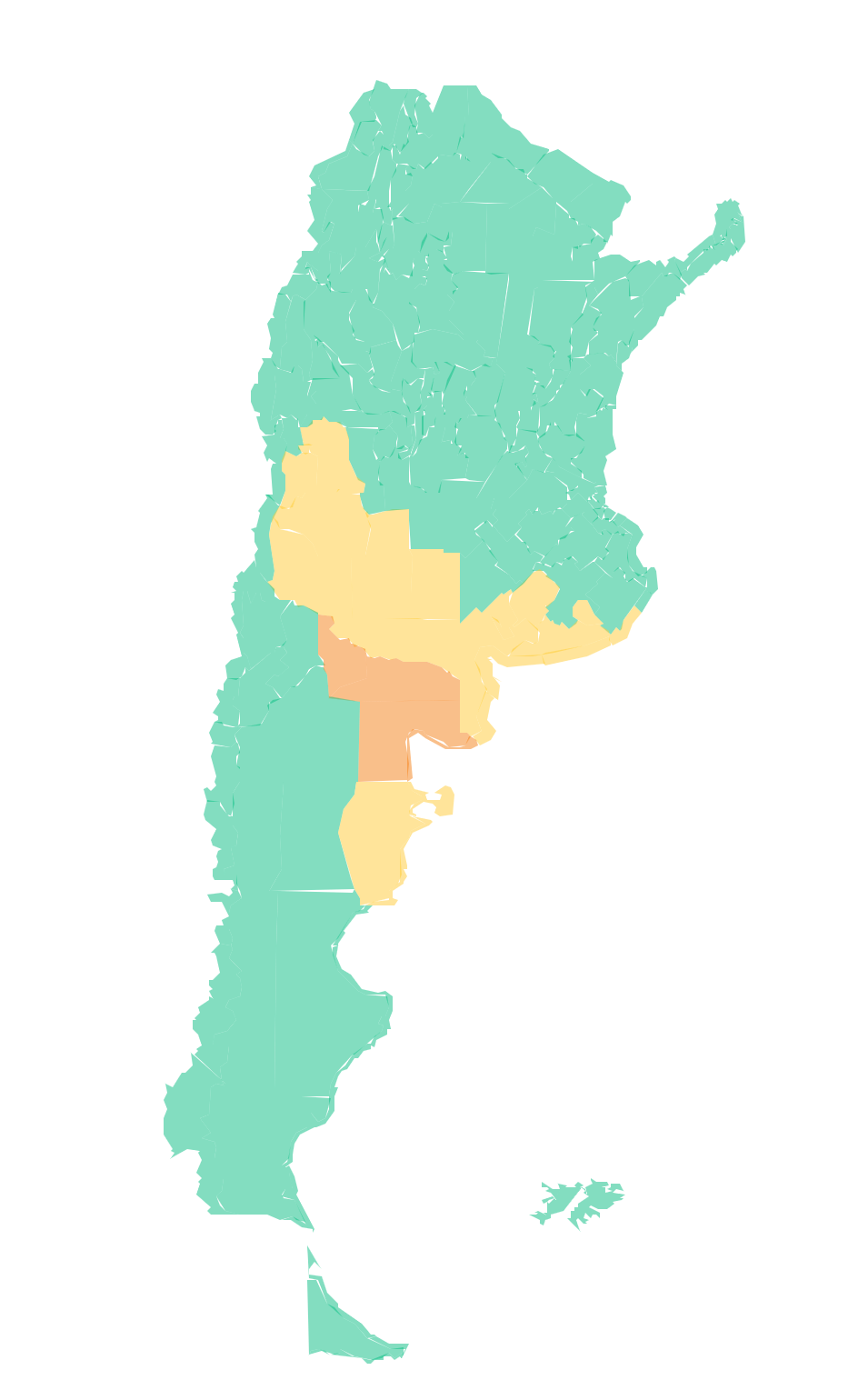 Mendoza: Zona baja de Malargüe – Zona baja de San Rafael – General Alvear – Valles de Tupungato – Junín – Valles de Tunuyán – Valles de Luján de Cuyo – Rivadavia – Valles de San Carlos – Rivadavia – Valles de Tunuyán – Junín – Valles de Tupungato – Valles de San Carlos – Valles de Luján de Cuyo