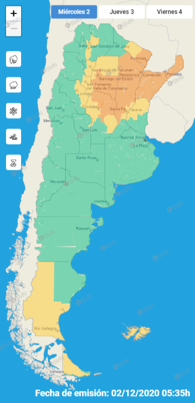 El área será afectada por tormentas y lluvias intensas, con valores de precipitación acumulada entre los 50 y 80mm, pudiendo ser superados de forma puntual principalmente en Misiones y el este de Formosa. También es posible que se registren ráfagas muy fuertes, caída de granizo de diversos tamaños e intensa actividad eléctrica.