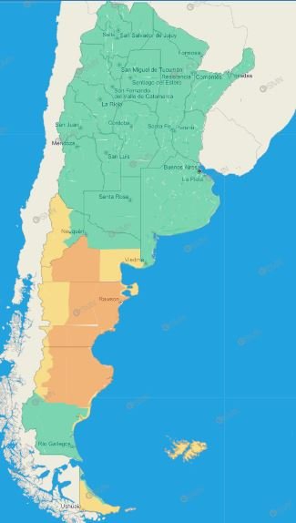 Tierra del Fuego: Zona no costera Río Grande – Zona no costera de Ushuaia – Costa de Ushuaia – Costa de Ushuaia
