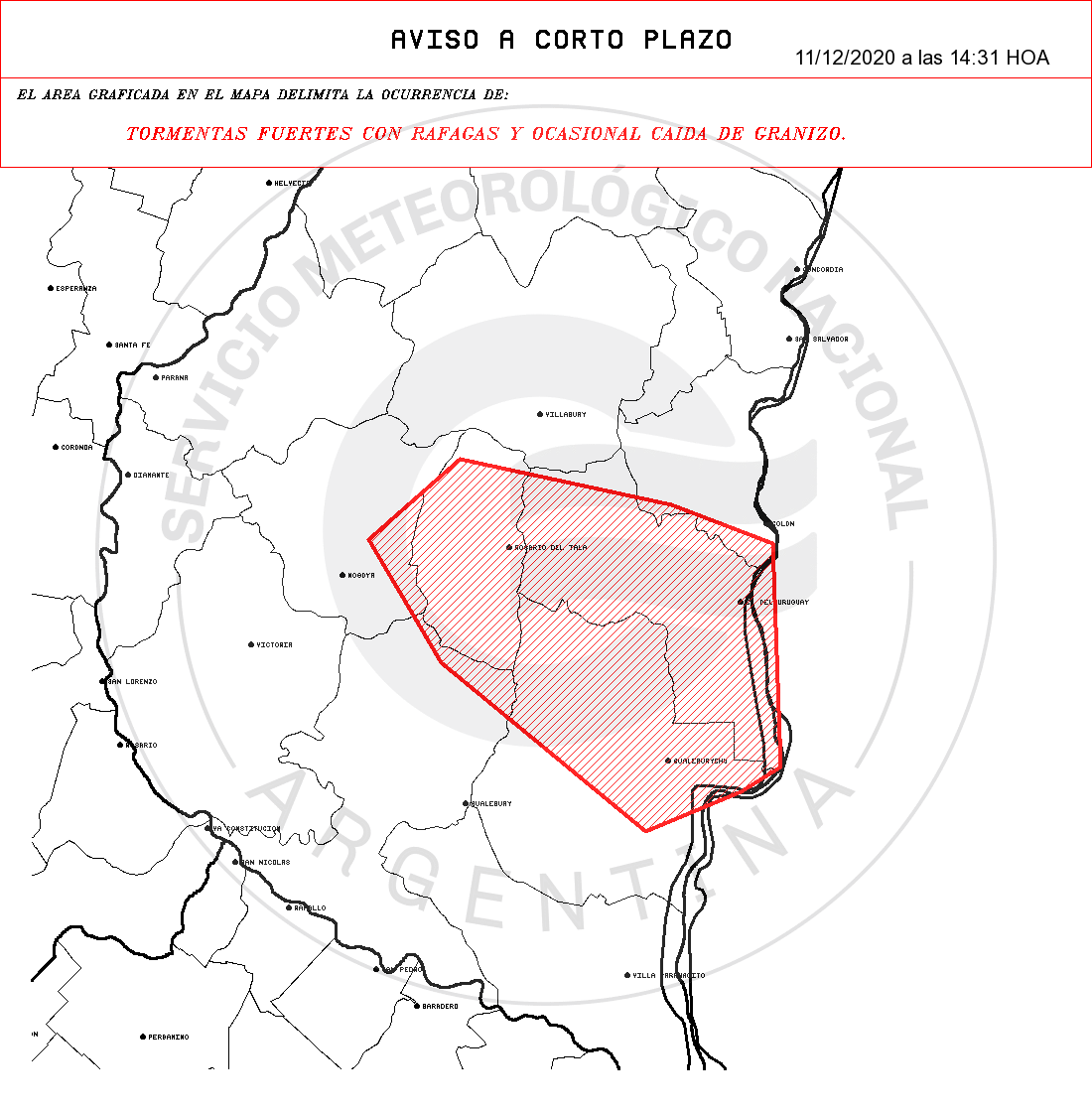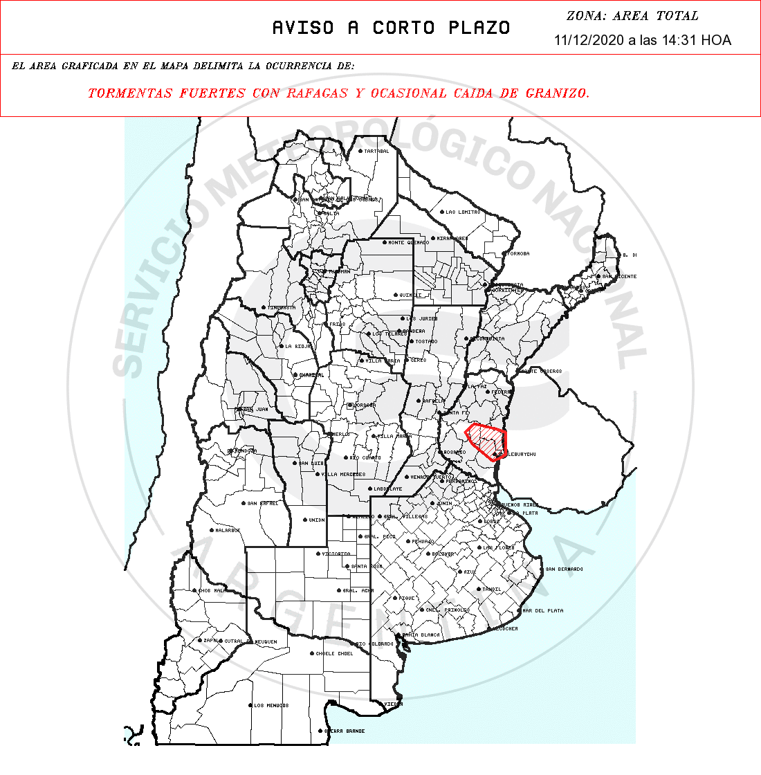Emiten un Aviso Meteorológico por lluvias y tormentas fuertes con ráfagas y granizo