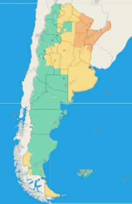 Tucumán: Burruyacú – Capital – Cruz Alta – Famaillá – Graneros – La Cocha – Leales – Simoca – Trancas – Yerba Buena – Zonas bajas de Chicligasta – Zonas bajas de Juan Bautista Alberdi – Zonas bajas de Lules – Zonas bajas de Monteros – Zonas bajas de Río Chico – Zonas bajas de Tafí Viejo