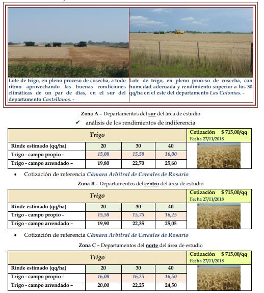 Como consecuencia de las condiciones ambientales mencionadas ocurridas estos últimos quince días, comenzó a detectarse cierto impacto sobre el cultivo, con disminución en los rendimientos, particularmente en los departamentos del sur del área de estudio. Disminución que osciló entre los 3 y 5 qq/ha. Otro indicador que se observó como consecuencia del período húmedo fue