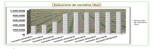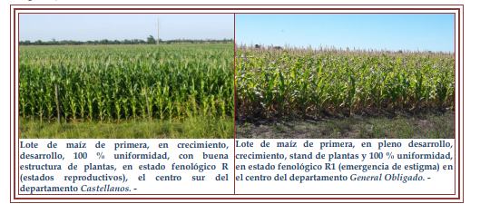 Hasta la fecha el cultivo de maíz presentó un avance en la siembra del 47,3 %, representando unas 89.000 ha. Las mismas correspondieron a lotes sembrados en primera instancia, denominado maíz de primera, el cual de acuerdo al área de estudio tendría dos usos, un porcentaje a grano para futura venta comercial y el otro porcentaje como forraje, para consumo animal bovino.