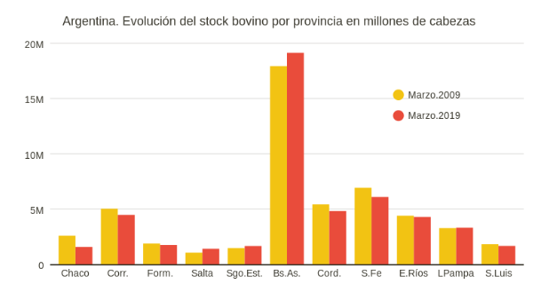 Argentina aún se encuentra en pleno proceso de recuperación de su stock bovino luego de la megaliquidación de vientres promovida por la política intervencionista del régimen kirchnerista, que hizo que las existencias vacunas, que en marzo de 2008 se encontraban en 57.583.122 cabezas, cayeran hasta un mínimo de 47.972.661 en marzo de 2011 para comenzar a crecer lentamente a partir de 2012.