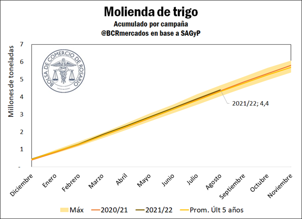 En lo que va de la campaña, la molienda de trigo llegó a 4,4 Mt