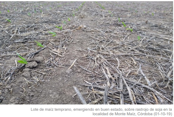 En los Núcleos Norte y Sur, la siembra de lotes tempranos avanza a buen ritmo en los departamentos con adecuada humedad superficial. Por otro lado, se relevó un importante número de cuadros ya emergidos.
