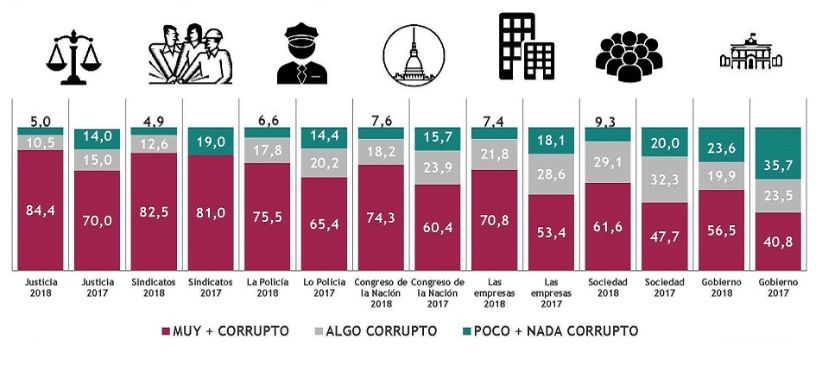 – La causa de los cuadernos parece haber quebrado la confianza, aún más, en las instituciones del Estado. Todos los indicadores referidos a la percepción de la corrupción han empeorado, inclusive los de la propia percepción del gobierno y de la sociedad. Es decir, pareciera desprenderse del presente estudio que como ciudadanos confiamos más en las acciones individuales de las personas, pero menos en el accionar en conjunto.