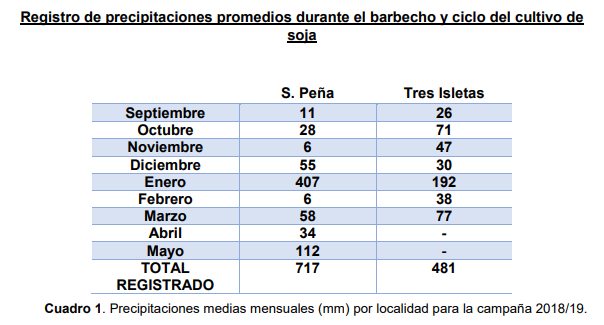 Los resultados obtenidos reflejan la heterogeneidad en la distribución pluviométrica en la región central chaqueña. Para la localidad de Pampa del Infierno el comportamiento se ajustó a la distribución media normal mientras que en Sáenz Peña y Tres Isletas no se logró la recarga del perfil hasta mediados de enero, provocando un retraso en las siembras hasta el mes de febrero para la localidad de Sáenz Peña. Este sitio aún no ha sido cosechado y debido a esta variabilidad en la fecha de siembra los resultados son incomparables con los presentados, por lo tanto, se presentarán en forma individual a modo de aportar datos para dicha fecha extrema.