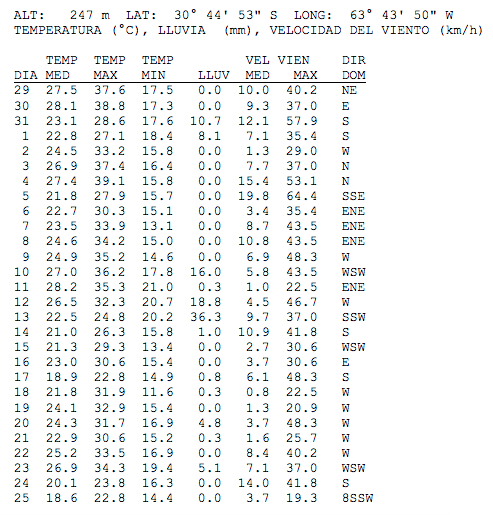Resúmen climatológico mensual para diciembre/enero de 2018
