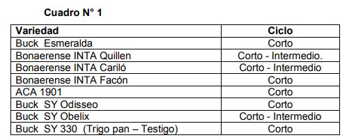 1- Se ratifica la información preliminar vertida por productores de la zona, quienes advirtieron oportunamente acerca de los bajos rendimientos obtenidos en trigo candeal respecto a trigos para pan en cultivos de secano.