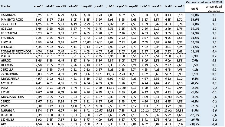 Así, la diferencia de precio origen-destino indica la cantidad de veces que aumenta el precio del producto al comercializarse en góndola.