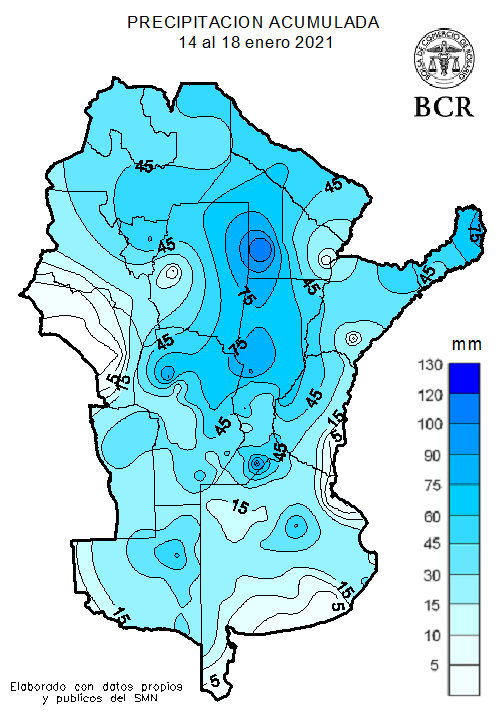 Sin embargo, el alivio hídrico sigue consolidándose sobre Argentina. A solo 3 días de las importantes lluvias que alcanzaron a la región central tras un mes de penurias, se produjo un nuevo evento superador. El sistema de tormenta que avanzó entre los días 14 y 18 de enero alcanzó a toda la región pampeana y al norte de Argentina. Los acumulados superaron los 45 mm en el 80% del territorio santafesino, en casi la mitad de Córdoba y Entre Ríos, y en gran parte de Chaco, Santiago del Estero, Tucumán, Salta, Formosa y Misiones. De esta manera, la porción norte del país se afirma un cambio de escenario productivo en medio de una “Niña” altamente consolidada.
