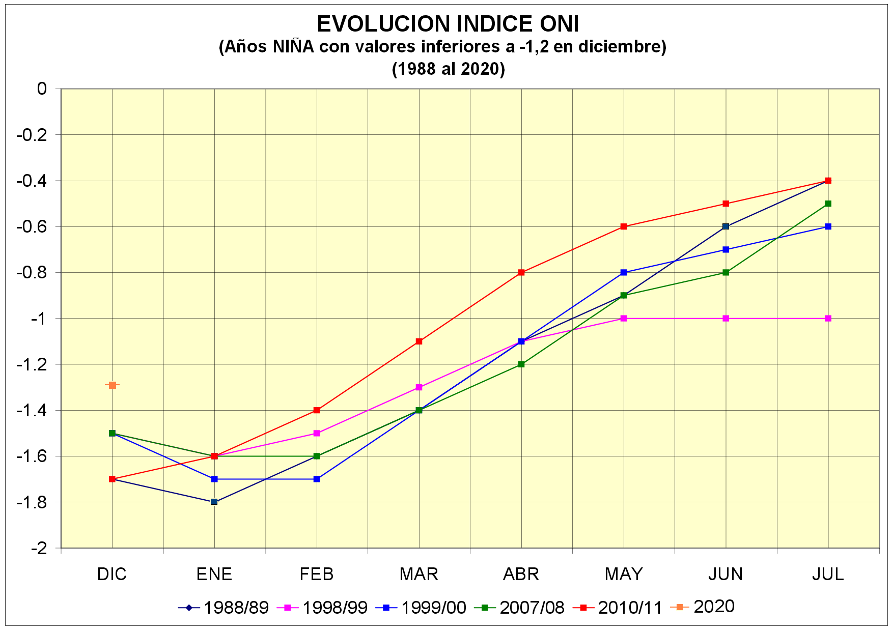 “Lo que sí podemos es proyectar hasta cuándo puede durar el efecto negativo del Pacifico. Comparando el valor de enfriamiento actual con el de cinco niñas anteriores con valores similares, la neutralidad recién podría esperarse en la transición al otoño”.
