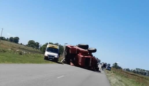 En la ruta 30 , a la altura de la bajada de Egaña, una cosechadora Marani Agrinar 2140 que se trasladaba a un lote perdió una rueda y protagonizó un vuelco que cortó el tránsito en la zona.