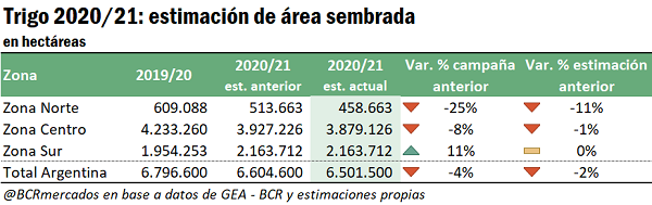 Para la Zona Sur, el territorio tradicionalmente triguero por excelencia, se estima un crecimiento del área sembrada en 2020/21: 200.000 ha más que en 2019/20.