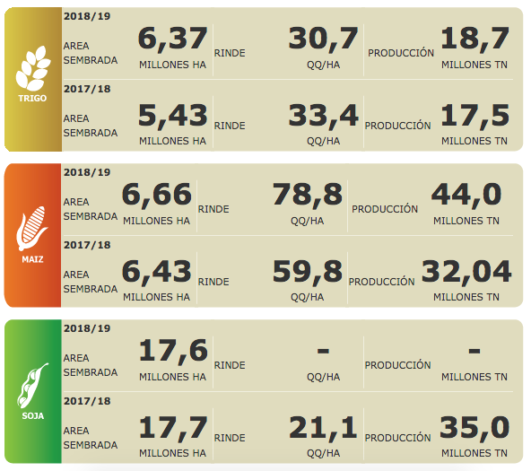 AgriculturaEstimación mensual nacional de producción de granos 28 de enero de 2019FacebookTwitterWhatsAppTelegramEmailImpresión Estimación mensual nacional de producción de granosFuente: BCRMás información agropecuaria click aquí
