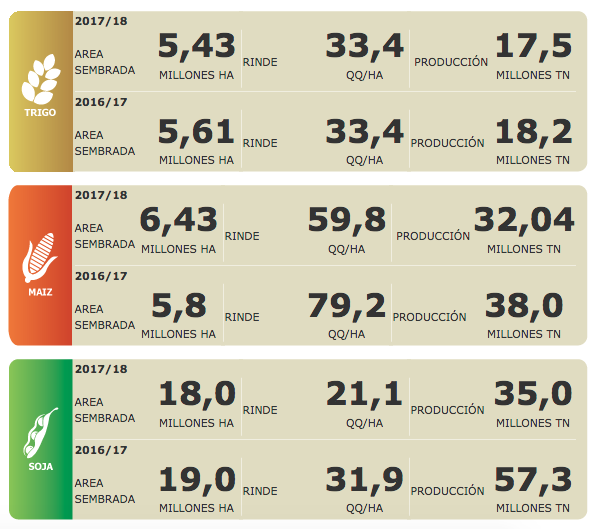 AgriculturaEstimación mensual nacional de producción de trigo, maíz y soja 2 de julio de 2018FacebookTwitterWhatsAppTelegramEmailImpresión Presentamos la estimación mensual nacional de producción elaborada por la Guía Estratégica para el Agro de la Bolsa de Cereales de Rosario.