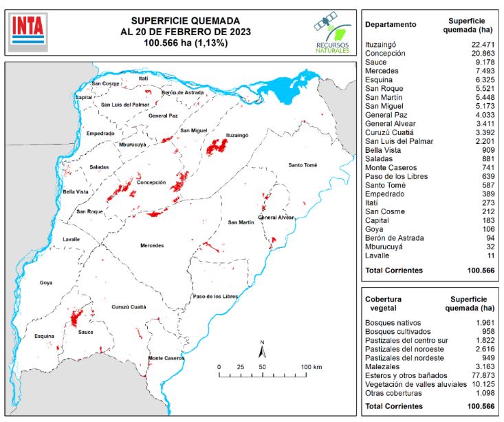 Figura 1. Superficie afectada por los incendios en Corrientes (período enero – febrero 2023).