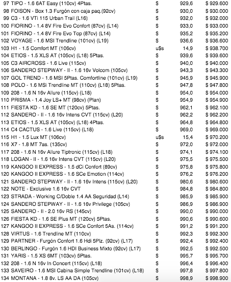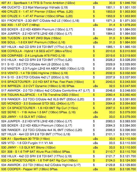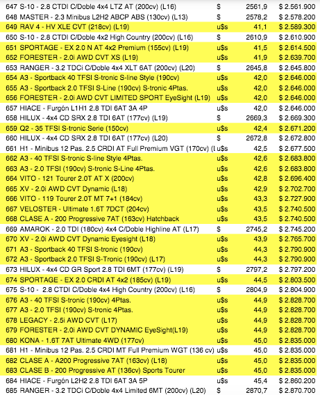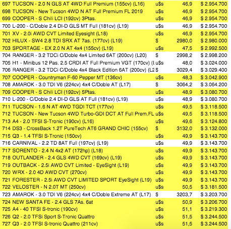 - Kia Sorento 2.2 CRDI 4×2 AT – $ 3.395.700
