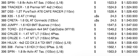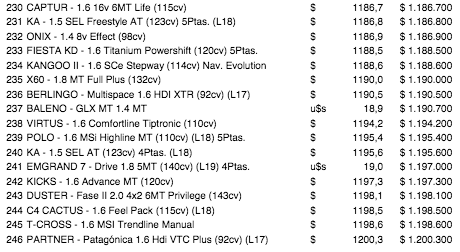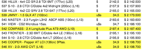 - Fiat 500X – 1.4T 9AT Cross 4×4 (170cv) – $ 1.807.000