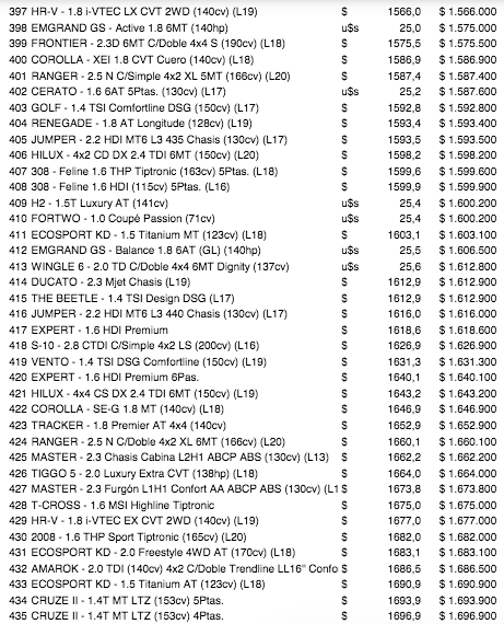 - Honda HR-V 1.8 i-VTEC EXL CVT 2WD – $ 1.880.000