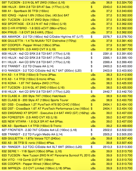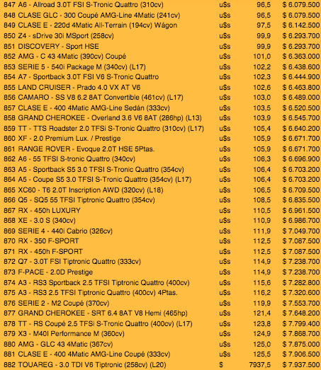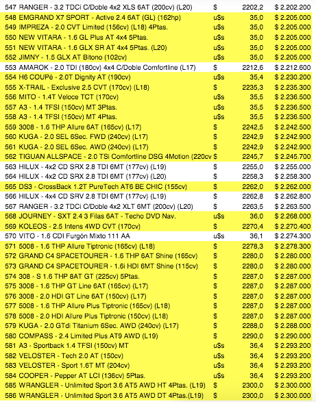 - Honda Accord 2.0T EXT AT – $ 3.509.100